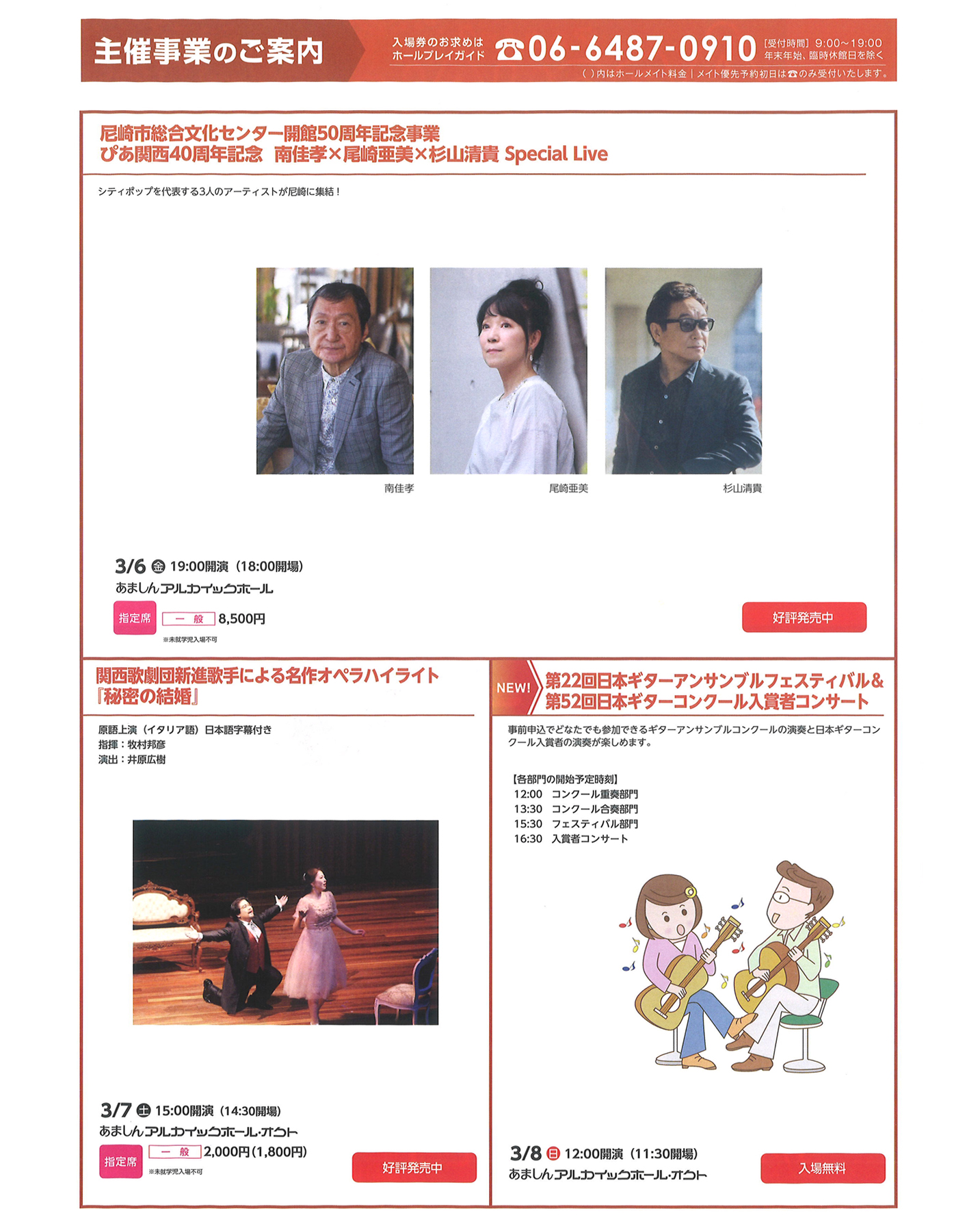 その他、あましんアルカイックホール 、あましんアルカイックホール・オクト などで3月に開催されるイベントの情報も掲載しています。