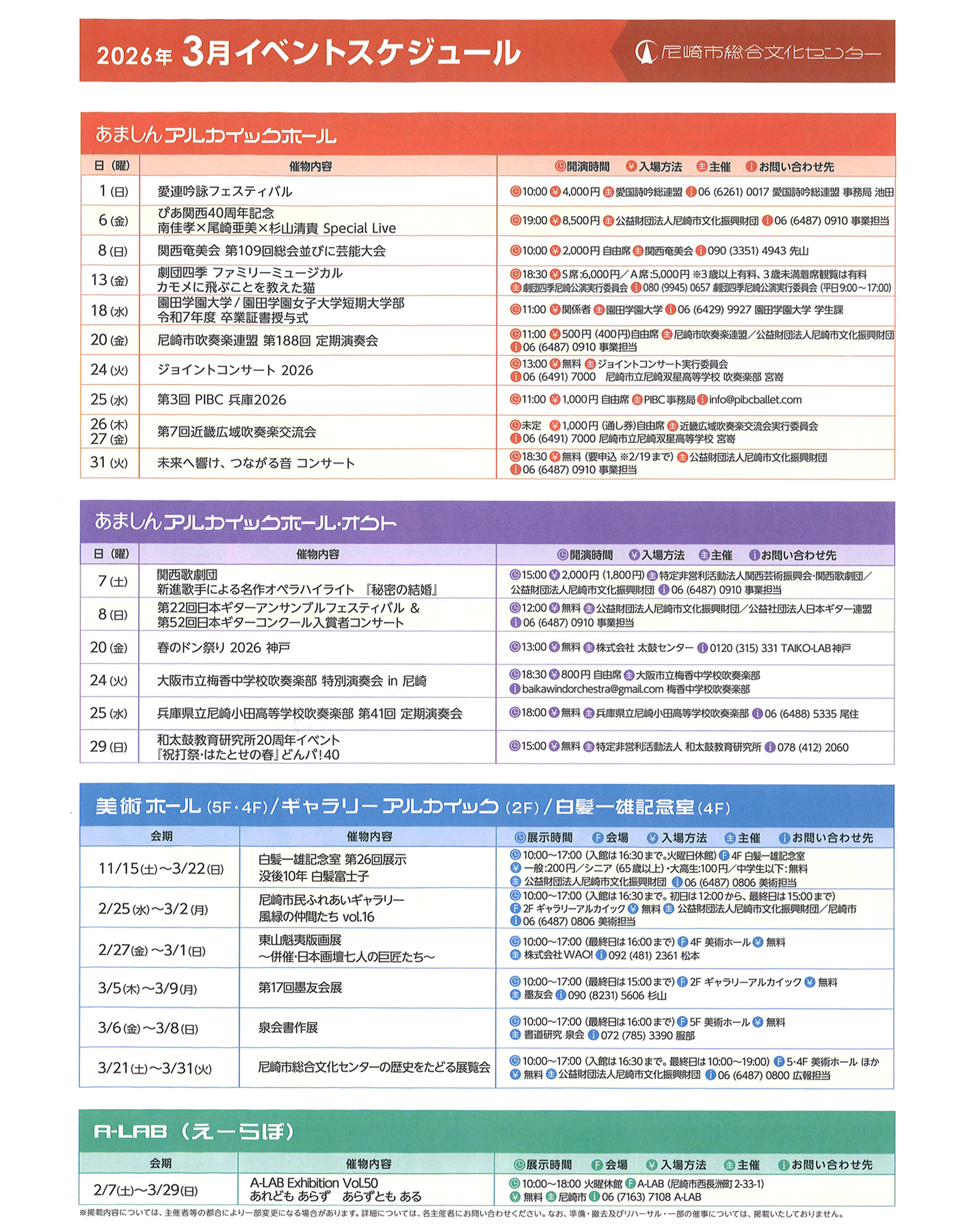 尼崎市総合文化センター イベントガイド 2026年3月号
